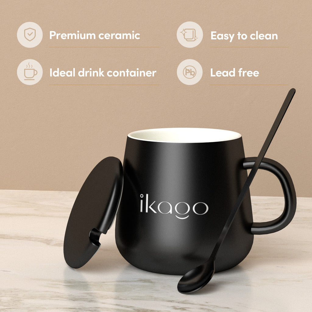 - PERFECT MATCH: ikago ceramic coffee mug is used as a reference for R&D testing, and has the most accurate temperature measurement results and the highest heating efficiency, making it the perfect pairing to the ikago coffee warmer. A set includes an ikago ceramic coffee mug, mug lid, and long handle spoon.